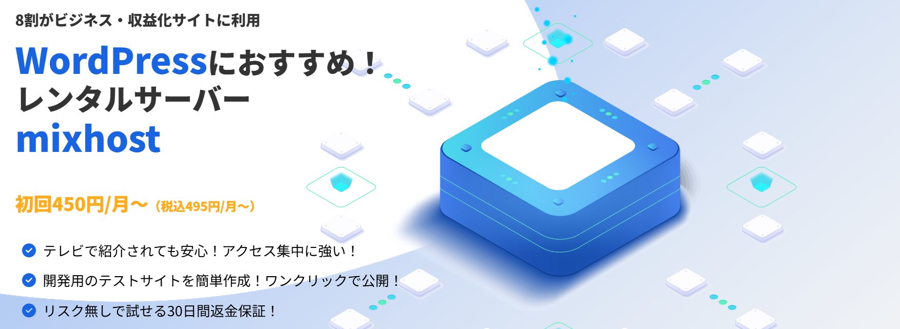 | mixhost | 表示速度がとても速い | 無料 | 1,320円〜 |